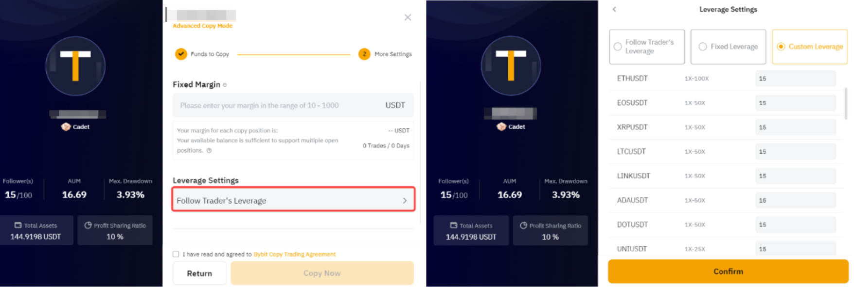 Followers can set the fixed margin for each copy trade on their own. Experienced users can select this mode to customize their order settings.