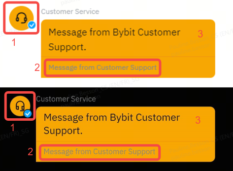 The profile picture of all Bybit Customer Support’s messages will be the headphone icon and the official blue tick will appear at the bottom right side.