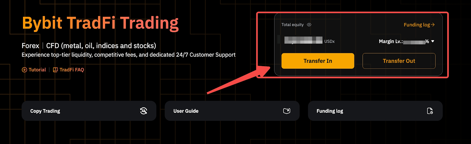 Step 2: On the Bybit TradFi Trading page, click on the Transfer In button to transfer funds to your TradFi account.