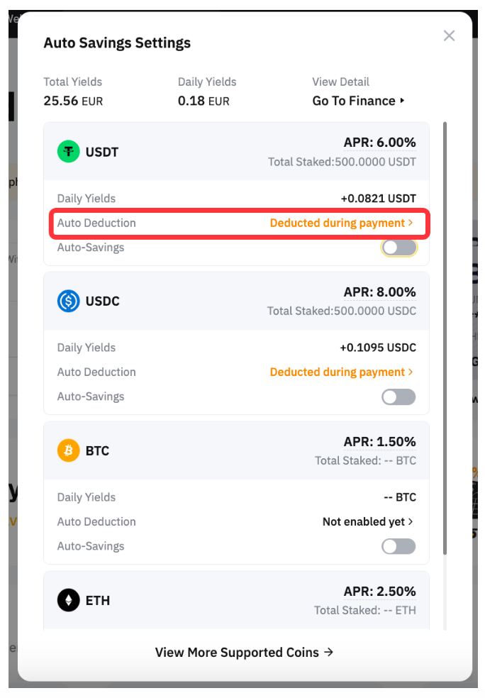 Puedes habilitar fácilmente esta función para monedas específicas admitidas en Ahorros Flexibles según tus preferencias de trading (en caso de que desees mantener ciertos activos en tu cuenta como margen para trading apalancado, etc.). Esto permite una planificación y utilización eficaz de tus criptoactivos inactivos.