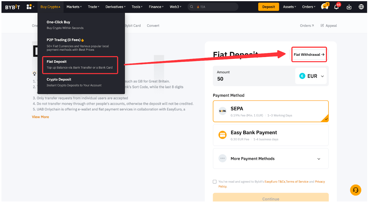 Tiene que depositar en la cuenta bancaria utilizando el mismo método de pago para añadir la cuenta para el retiro fiat.