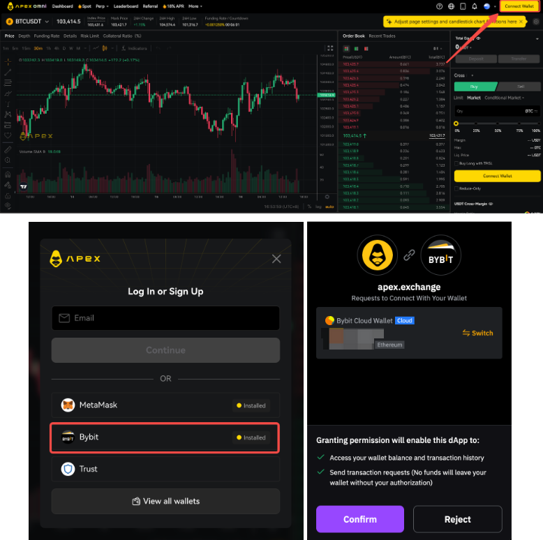 Aún puedes gestionar tus posiciones en el sitio web de Apex. Si anteriormente utilizaste Cloud Wallet para hacer trading, conéctate utilizando la extensión.