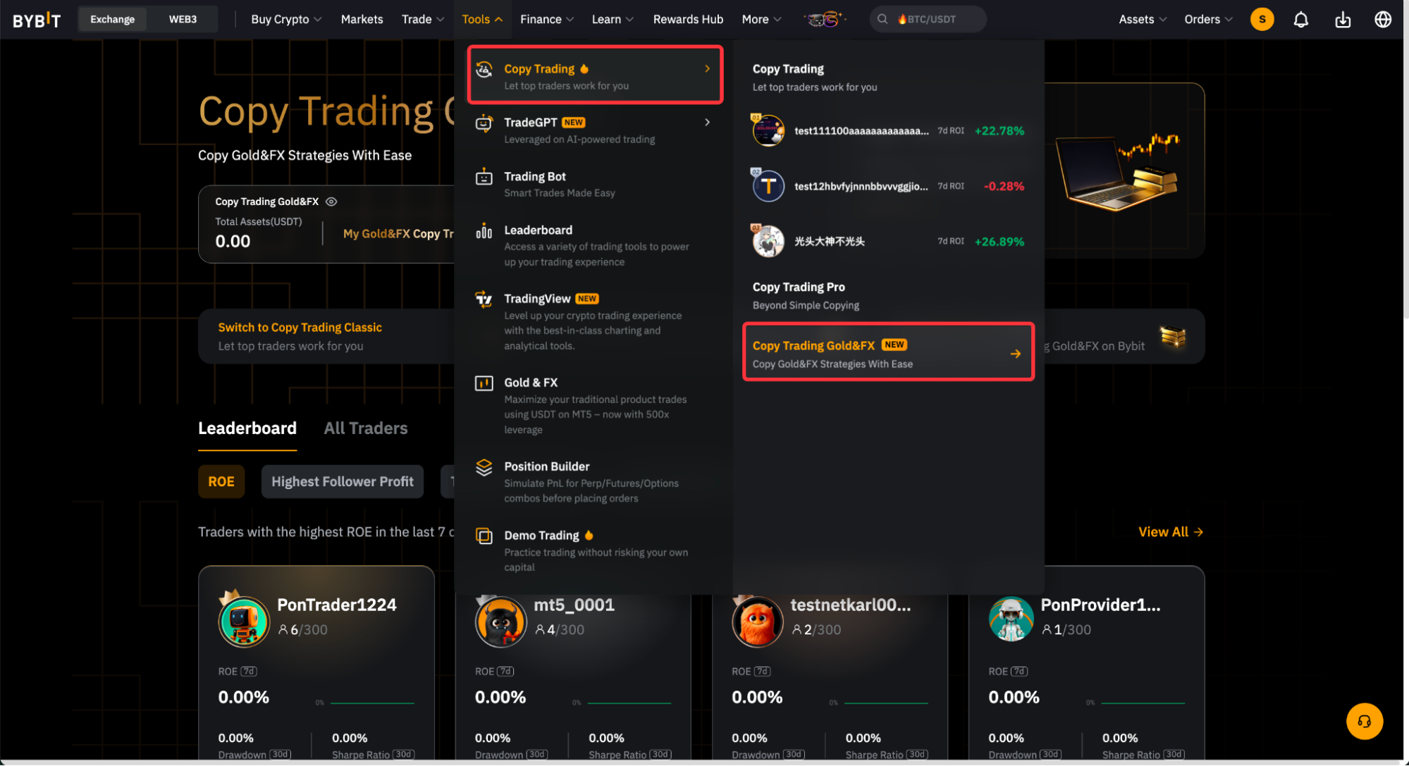 Paso 2: ve a Herramientas → Copiar operaciones → Copy Trading de TradFi.
