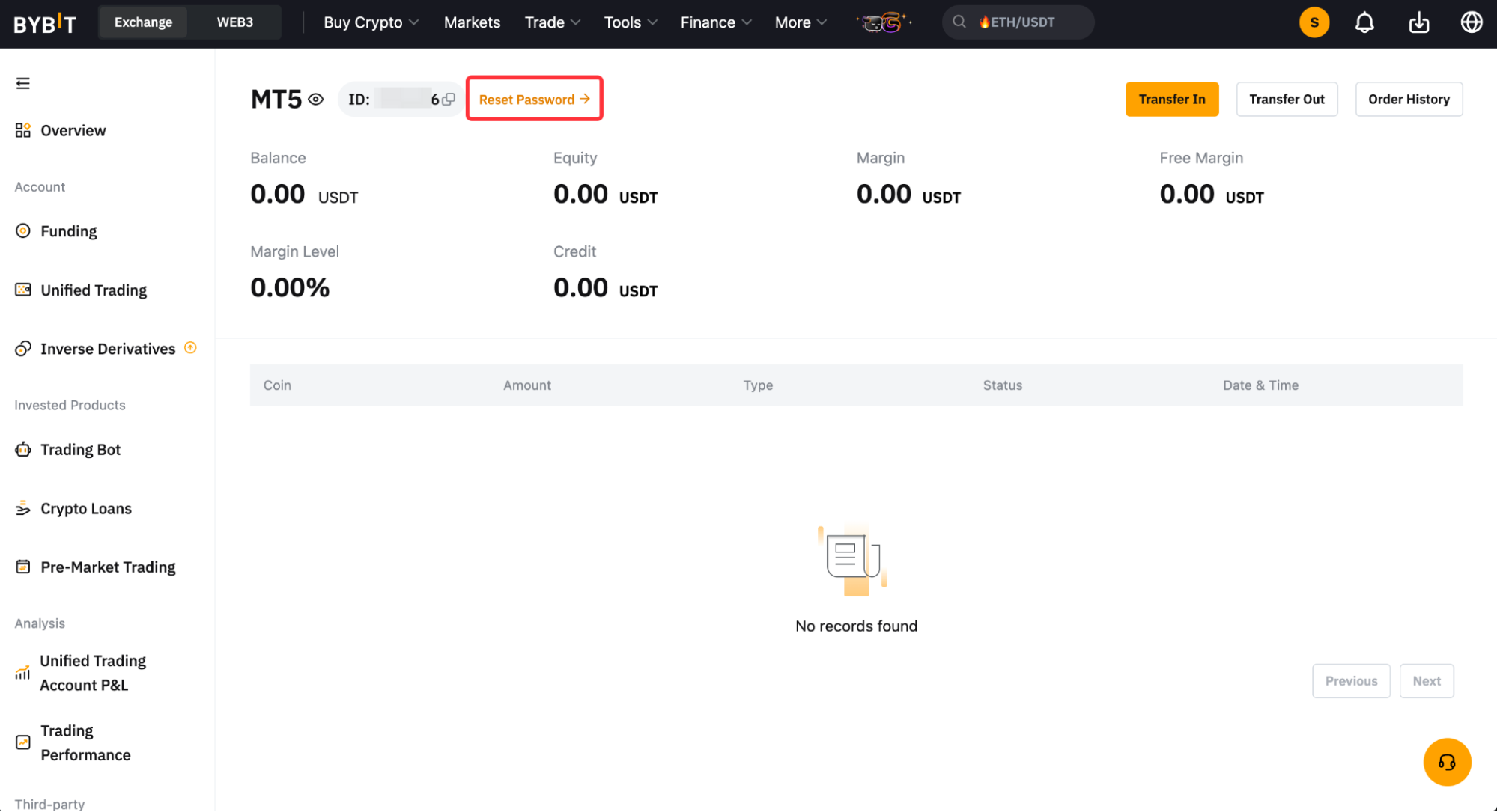 Paso 2: haz clic en Restablecer contraseña en la esquina superior izquierda para establecer la contraseña de tu cuenta de TradFi MT5. Configura la autenticación de Google en tu subcuenta de Master Trader de TradFi siguiendo esta guía si aún no lo has hecho.
