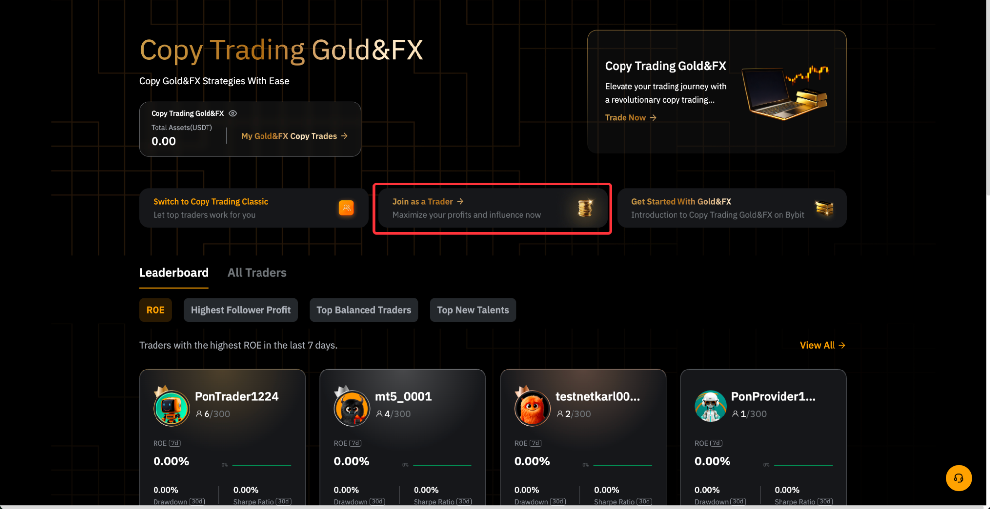 Paso 3: pulsa en Unirse como trader para entrar en la página de solicitud de Master Trader de TradFi.
