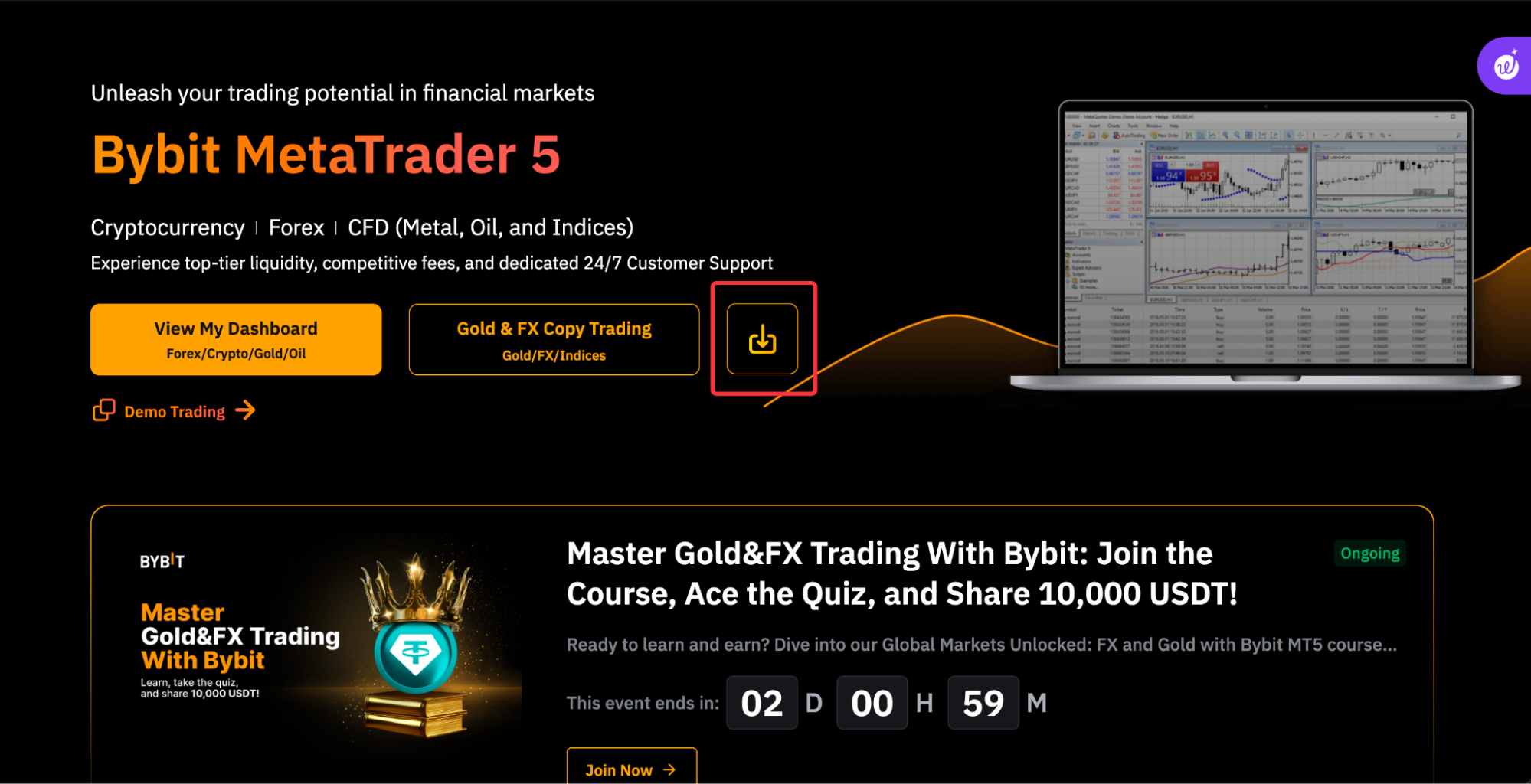 Paso 4: descarga e instala la plataforma MetaTrader5 desde la página de inicio de TradFi MT5 en Bybit.