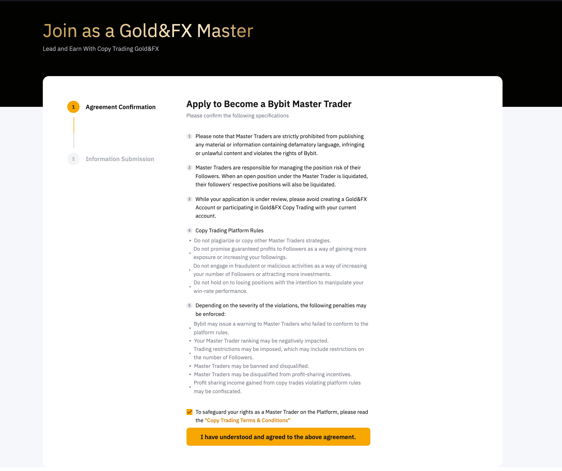 5. Lee el Acuerdo de Master Trader: conoce tus responsabilidades y las posibles infracciones antes de presentar la solicitud.