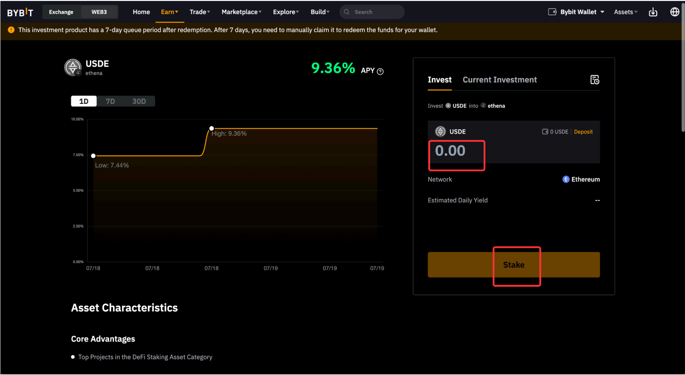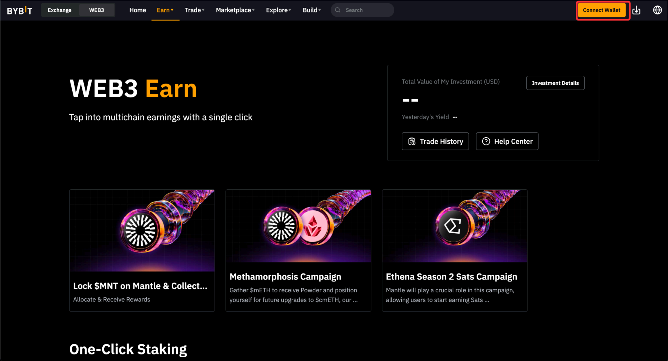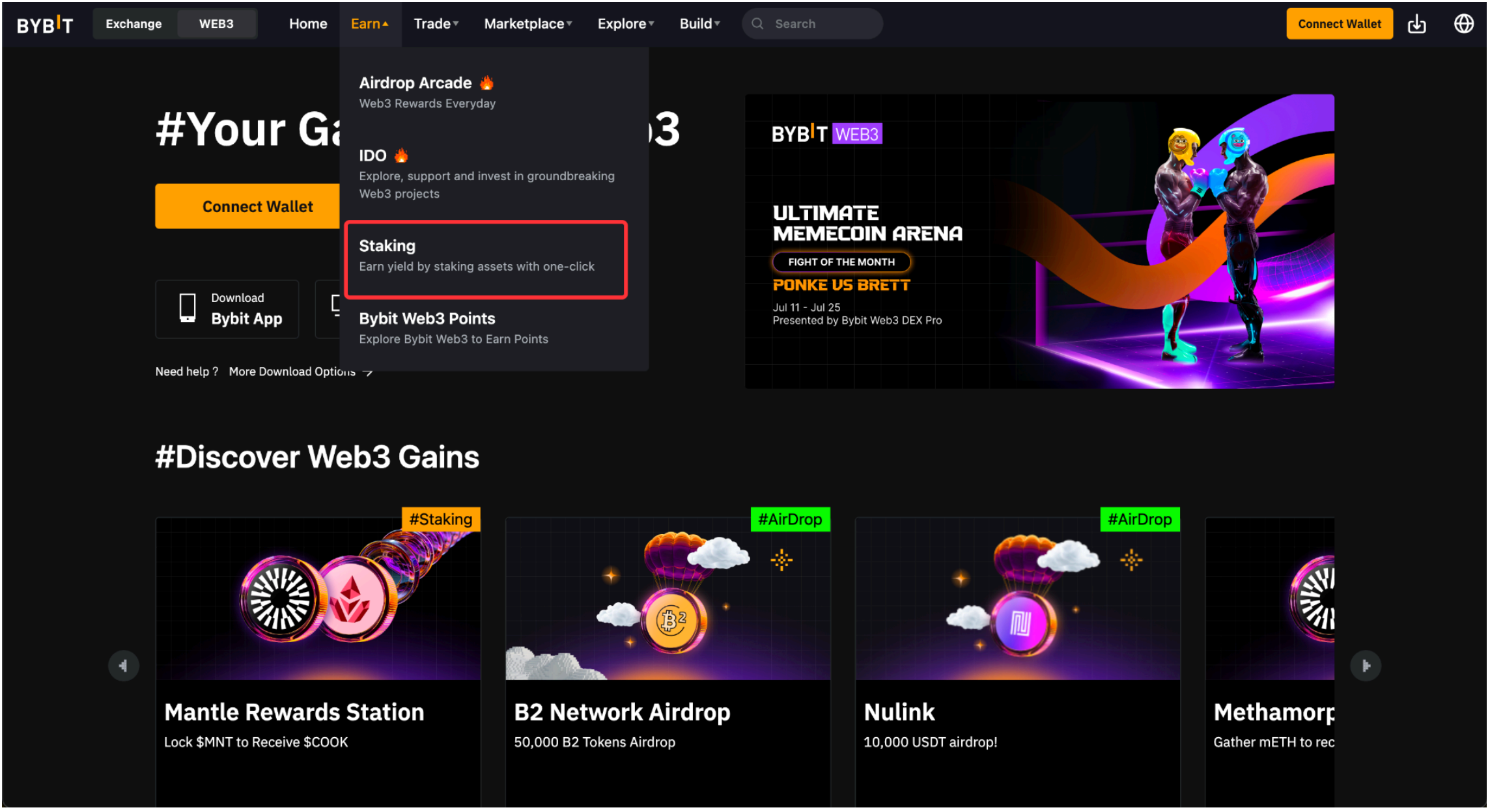 Aquí tienes una guía paso a paso sobre cómo hacer tu primer staking Billetera con Bybit Billetera en la aplicación/en el sitio web. Antes de hacer staking, tendrás que crear una Bybit Wallet y depositar en ella los tokens de staking que desees.