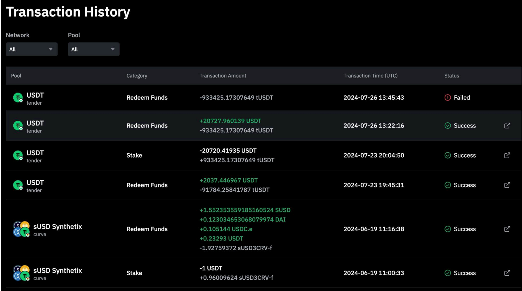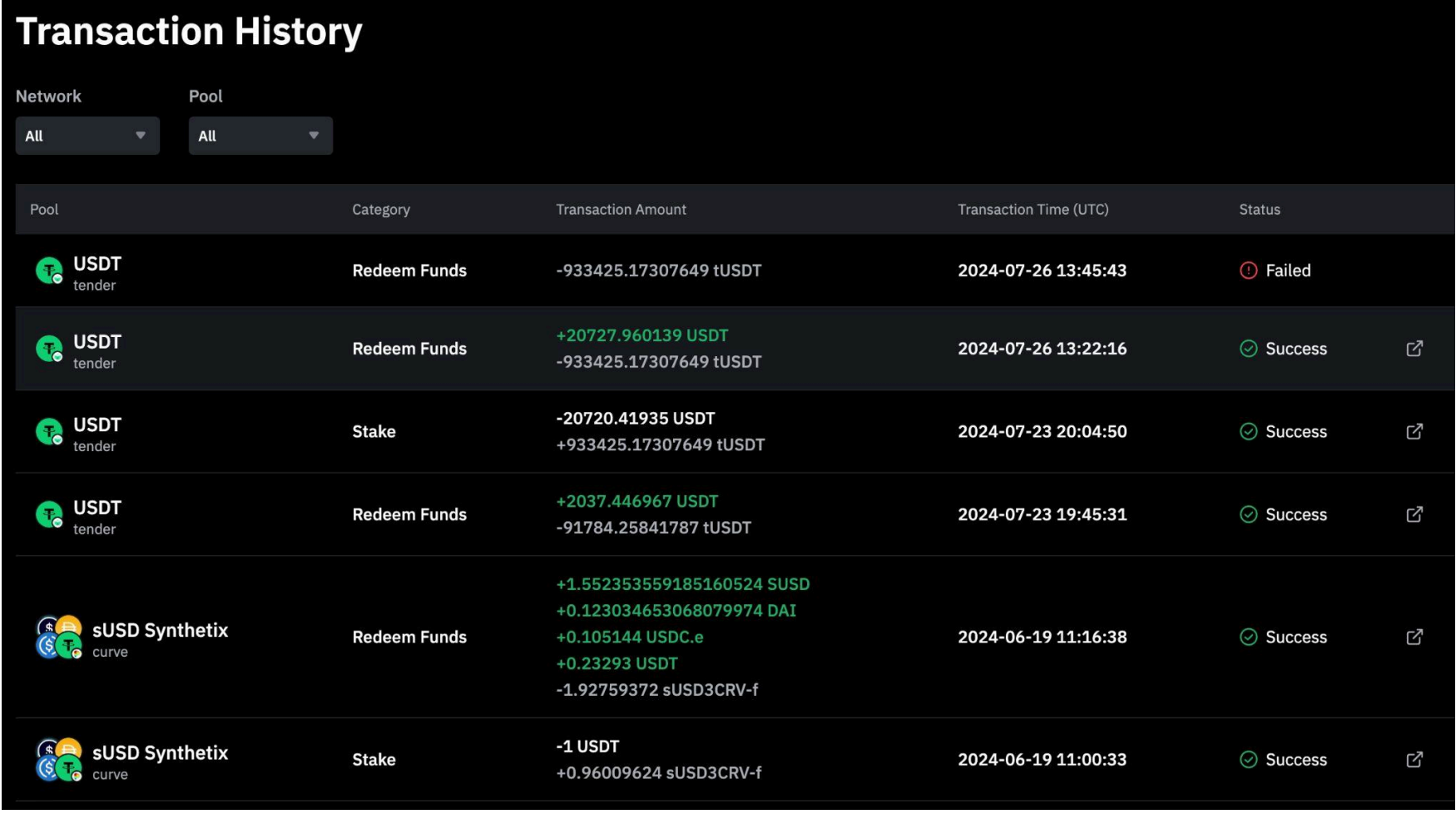 Una vez que el staking se haya realizado correctamente, los detalles de la transacción se mostrarán en el historial de transacciones.