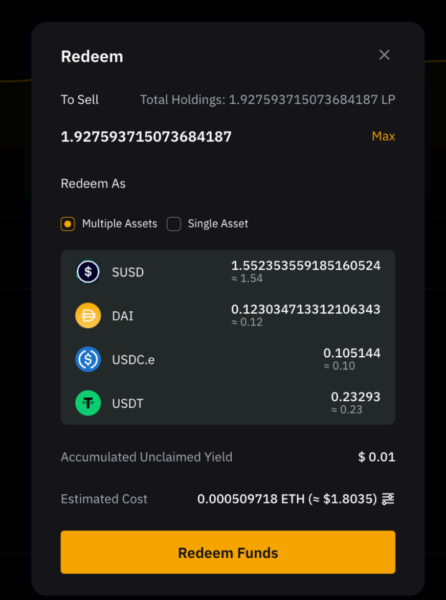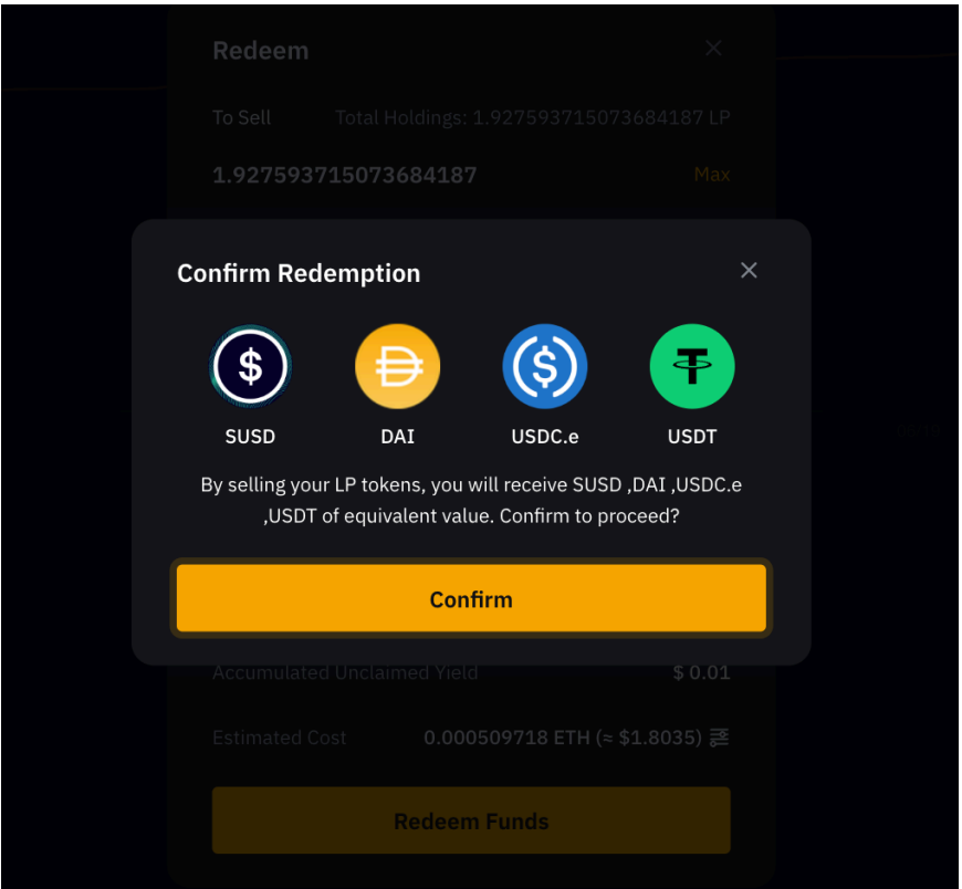Paso 4: Confirma los detalles del canje, es decir, la cantidad y el token recibidos, haciendo clic en Confirmar.