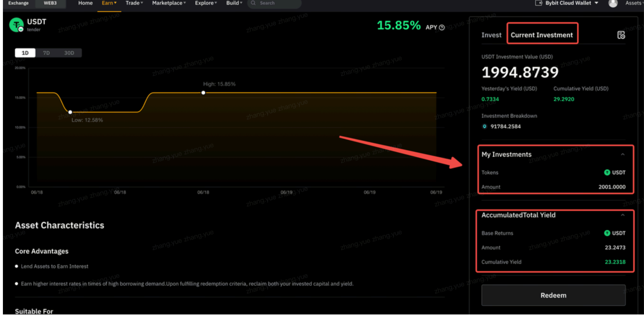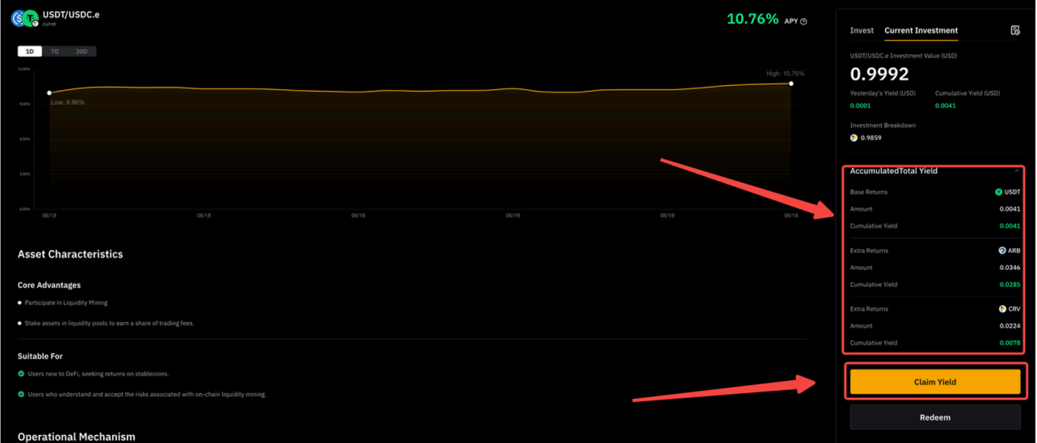 Ten en cuenta que los detalles de tu inversión también se mostrarán en la página del grupo de staking correspondiente. Los detalles incluyen el rendimiento total acumulado.