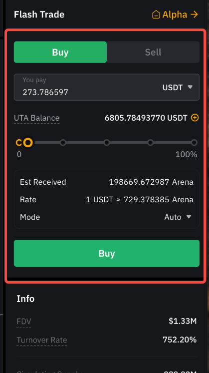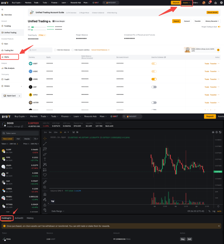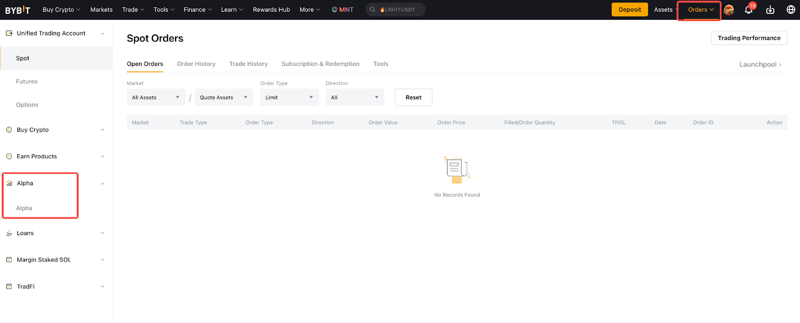 オプション2: 資産→Alphaから、取引ページに移動します。資産については、保有資産を参照してください。