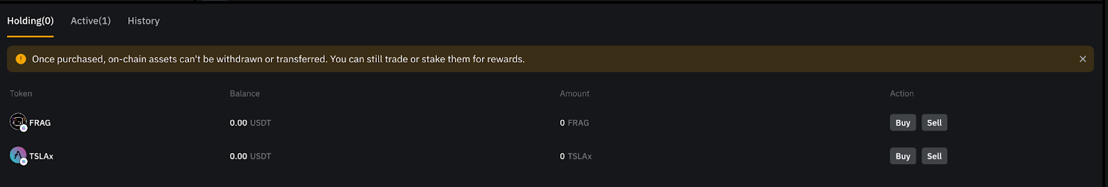 オプション3: 特定のトークンの取引ページに移動します。保有資産はチャートの下の保有セクションに表示されます。