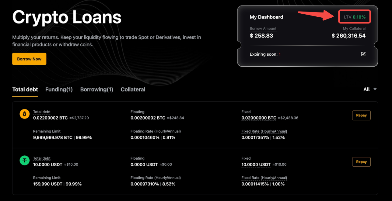 Loan-to-Value (LTV) ratio is a key indicator for evaluating the risk level of your borrowed assets.