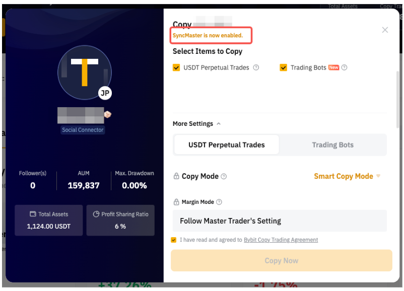 • You can choose whether to copy the Master Trader’s existing bots to achieve similar results. If market conditions have changed significantly after the Master Trader initially created the bot, and it is no longer suitable, those bots will not be copied.