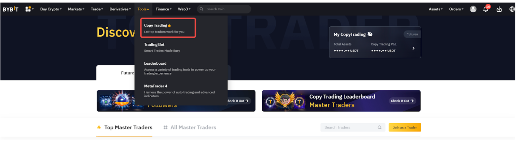 Step 1: Please click on Tools Copy Trading in the navigation bar to enter the Copy Trading Classic page.