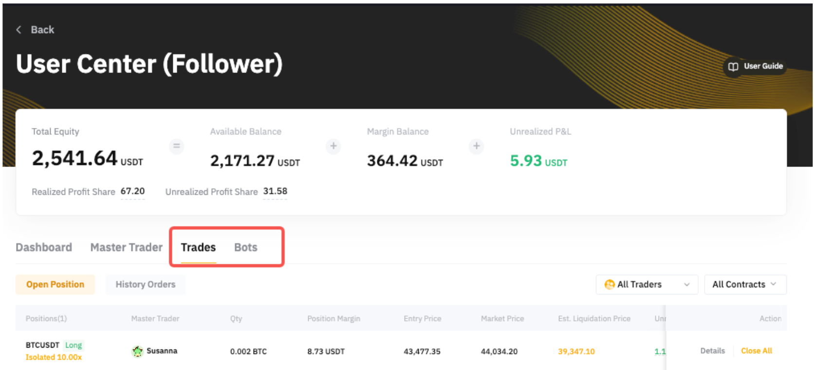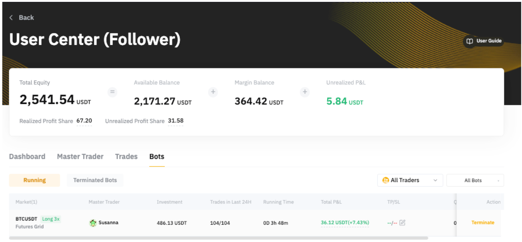 For Trading Bots, please note that Followers are not able to invest more investment amount or withdraw profits. For USDT Perpetual Trades, you can refer to the guide below.