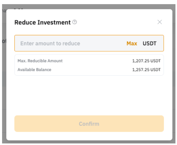 — You will be able to see the Max. Reducible Amount on the Reduce Investment window.