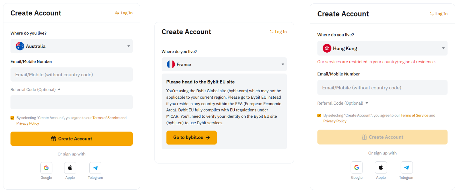 You can also tap on the Sign Up With buttons to easily create your Bybit account using: