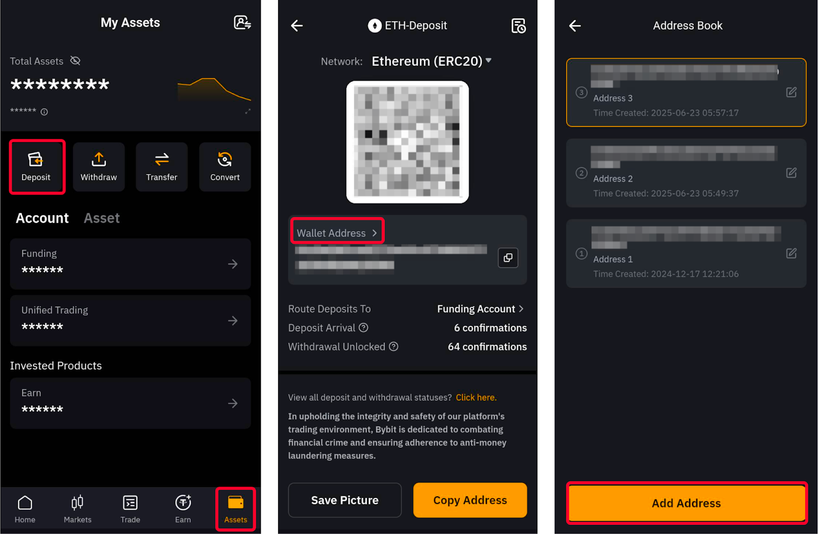 На платформе Bybit действуют ежедневные лимиты депозитов для каждого конкретного блокчейна. Депозиты, превышающие этот лимит, временно останутся активами, которые нельзя использовать в торговле, и их можно просмотреть в разделе «Активы, ожидающие перевода» на странице «Аккаунт финансирования».