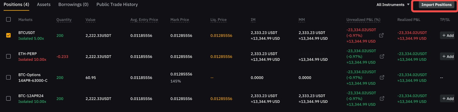 Крок 2. Виберіть позицію, яку хочете закрити. У верхньому правому куті нижньої частини стане доступною кнопка Імпортувати позицію.