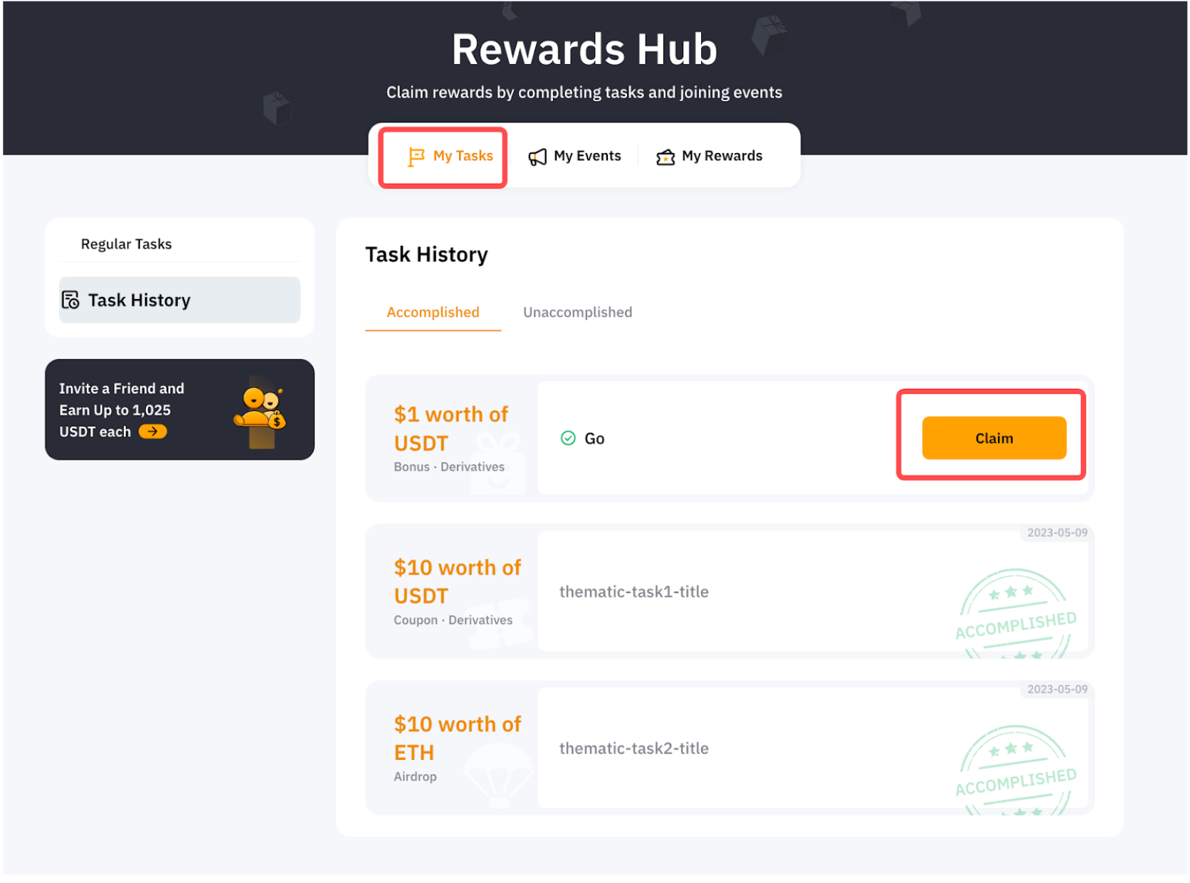 Крок 2. Натисніть Мої завдання та виберіть Історія завдань, щоб отримати бонус у розділі Виконані.