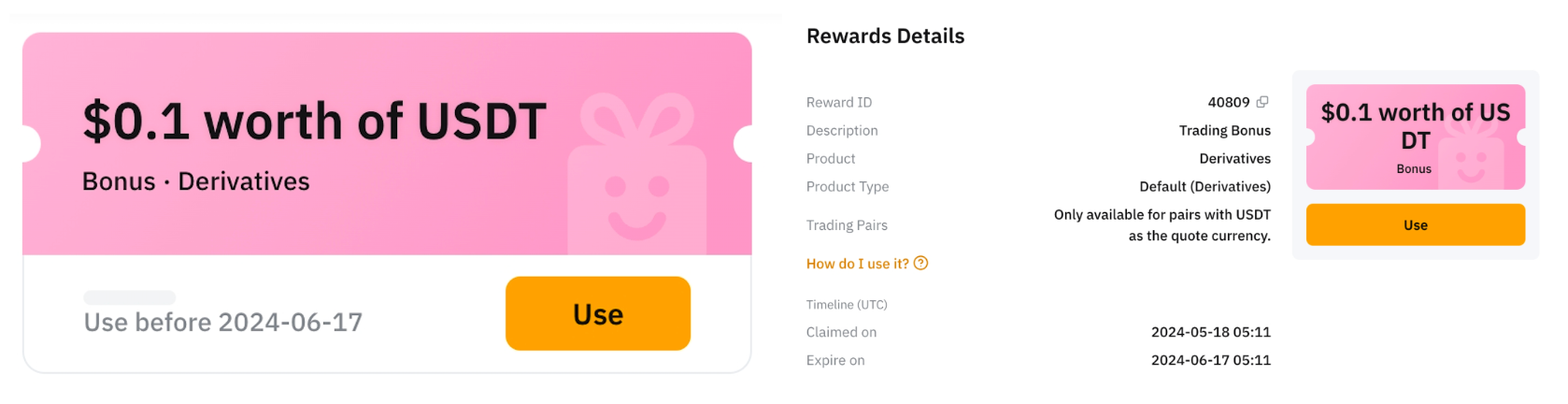 ● Після успішного отримання бонусу його буде зараховано на ваш акаунт, і відповідна сума відображатиметься на торговій сторінці відповідного продукту. Бонуси не можна переводити на інші рахунки або обмінювати на інші активи.