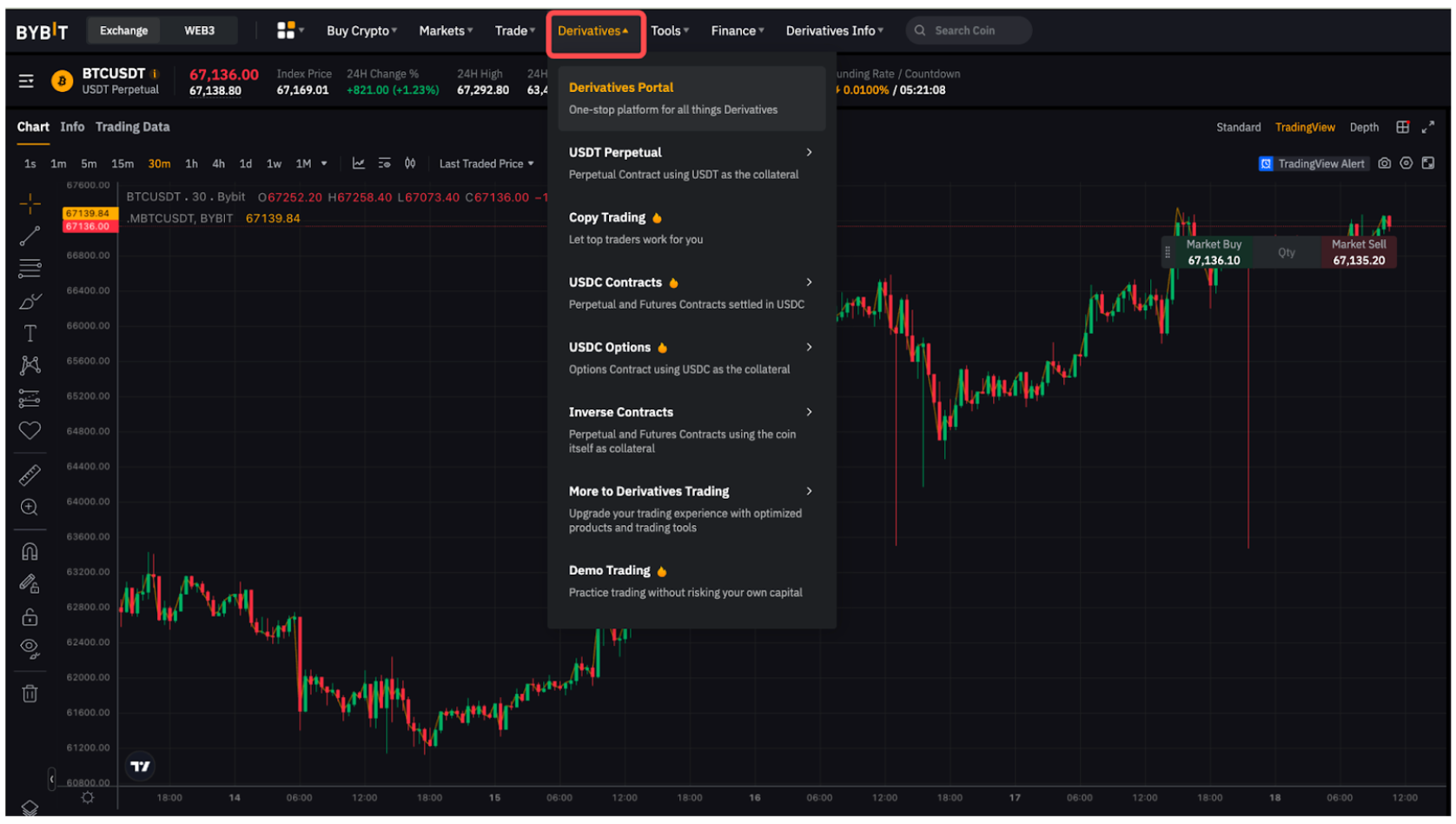 Крок 1: Наведіть курсор на вкладку Деривативи та натисніть бажаний тип контракту, що переведе вас у відповідний торговий інтерфейс.