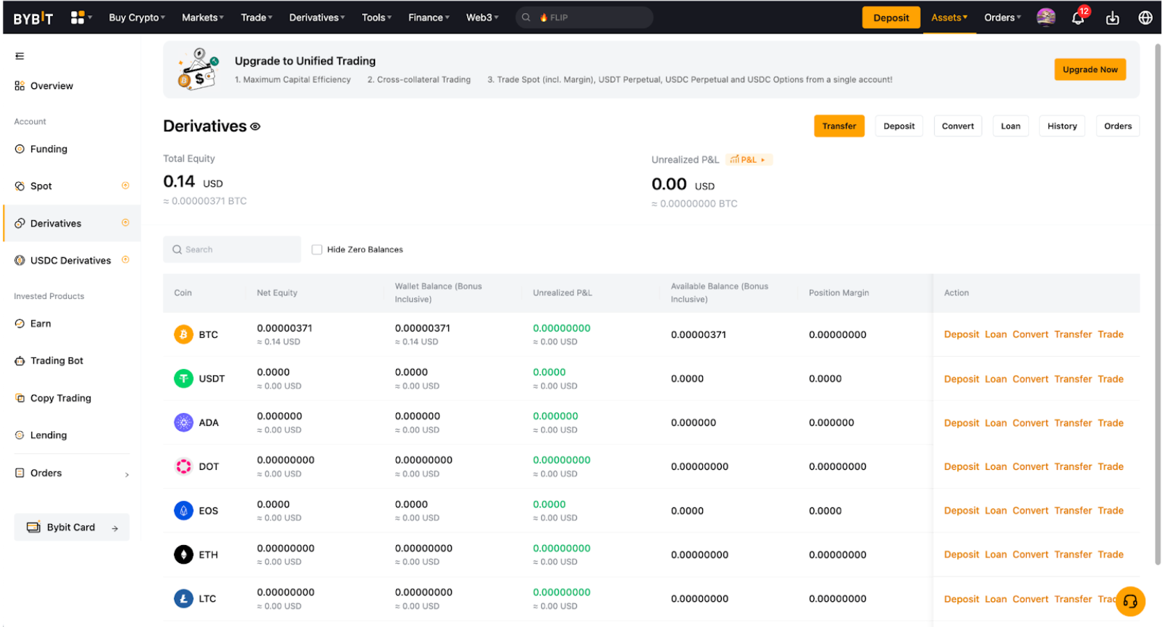 反向永續和交割合約 溫馨提示:在交易非反向合約衍生品時,您需要將資金划轉至您的統一交易賬戶。 |