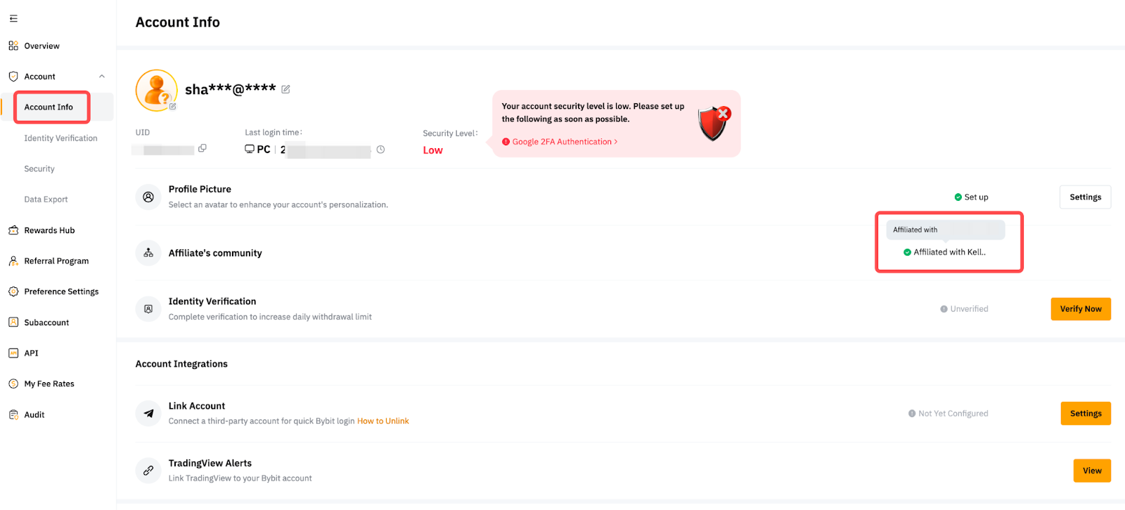 您只能新增 Bybit 代理邀請碼(代理計劃)提供的邀請碼。 不支援其他 Bybit 用戶提供的推薦碼(推薦計畫)。