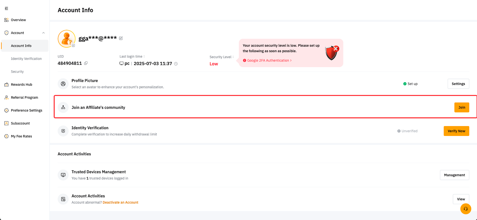 第 2 步:按一下加入事業商的社群。 如果您沒有看到此入口,則可能是由於未達到上述標準。