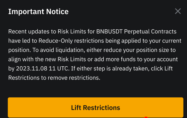 10 天緩衝期結束后,系統會自動為您的帳戶應用調整后的風險參數,並允許您開倉。 但是請注意,屆時該交易對的倉位可能會面臨強平風險。 因此,為避免潛在強平風險,建議您在 10 天緩衝期內完成倉位管理或轉入更多資金到您的合約或統一交易帳戶
