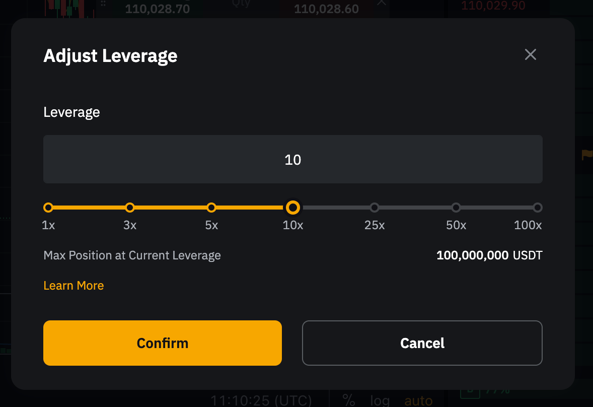 — 在您沒有任何倉位或訂單的時候,如果使用中的槓桿比調整后最大可允許槓桿高,您在下單的時候有可能會遇到錯誤資訊。 屆時您只需要手動調整槓桿以匹配該交易對當前最大可允許槓桿。